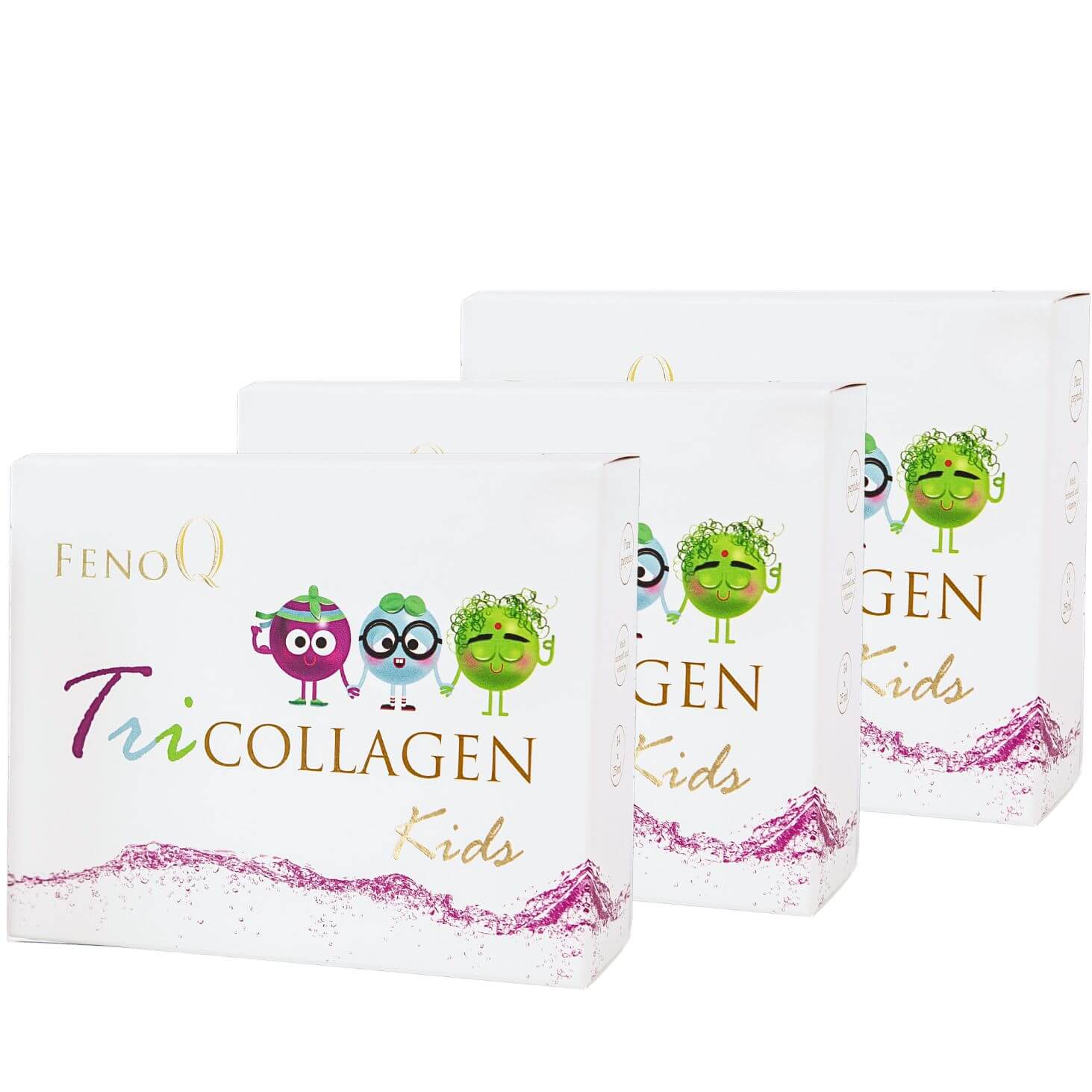 - Rekomenduojamas TriCollagen Kids kursas: kursą rekomenduojama kartoti bent 3-4 kartus per metus. Esant poreikiui ar specialisto rekomendacijai, galima vartoti ir ilgesnį laiką be pertraukų arba su mažesnėmis pertraukomis. Tai priklauso nuo vaiko aktyvumo fiziškai ar protiškai dirbant, mitybos, imuninės sistemos, sezoniškumo.
